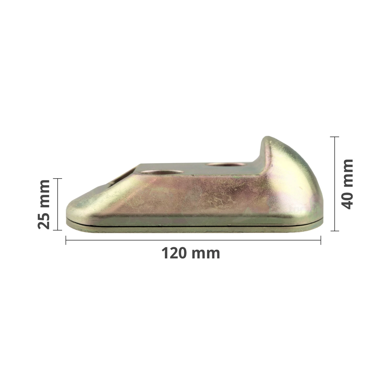 Die Höhe der Auflauffläche liegt bei 25 mm, der höchste Punkt des Anschlags beträgt 40 mm, die Länge 120 mm und die Breite 80 mm. Der Auflaufbock wird am Boden unter dem Flügel und unter dem Elektroschloss angebracht. Um den Auflaufbock höher zu legen, eignen sich spezielle Unterlegplatten, die ebenfalls für die Arretierung erhältlich sind. Sie haben jeweils eine Höhe von 3 mm und können als Hörmann Unterlegplatten-Set für Auflaufbock unter der Artikelnummer 438774 erworben werden.
