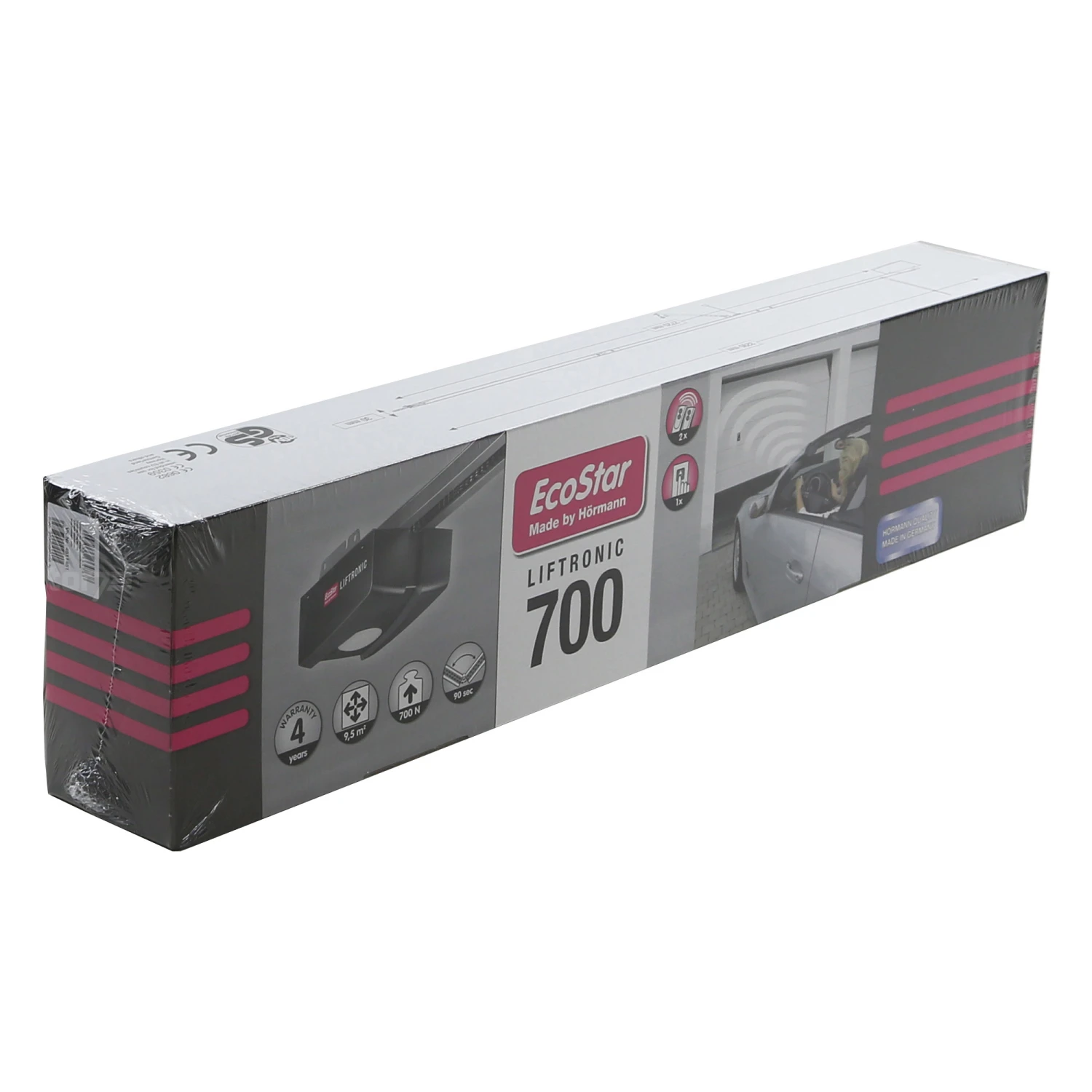 Der Liftronic 700 besitzt eine maximale Zugkraft von 700 N. Er eignet sich anders als der Liftronic 500 auch für Holztore. Die Torblattfläche darf höchstens 7 m² betragen. Die Handsender RSC 2 nutzen die Frequenz 433 MHz Rolling Code. Sie haben zwei Funktionstasten, die zwei verschiedene Garagentore fernbedienen können. Der Handsender ist zudem mit dem EcoStar RSE 2 kompatibel.