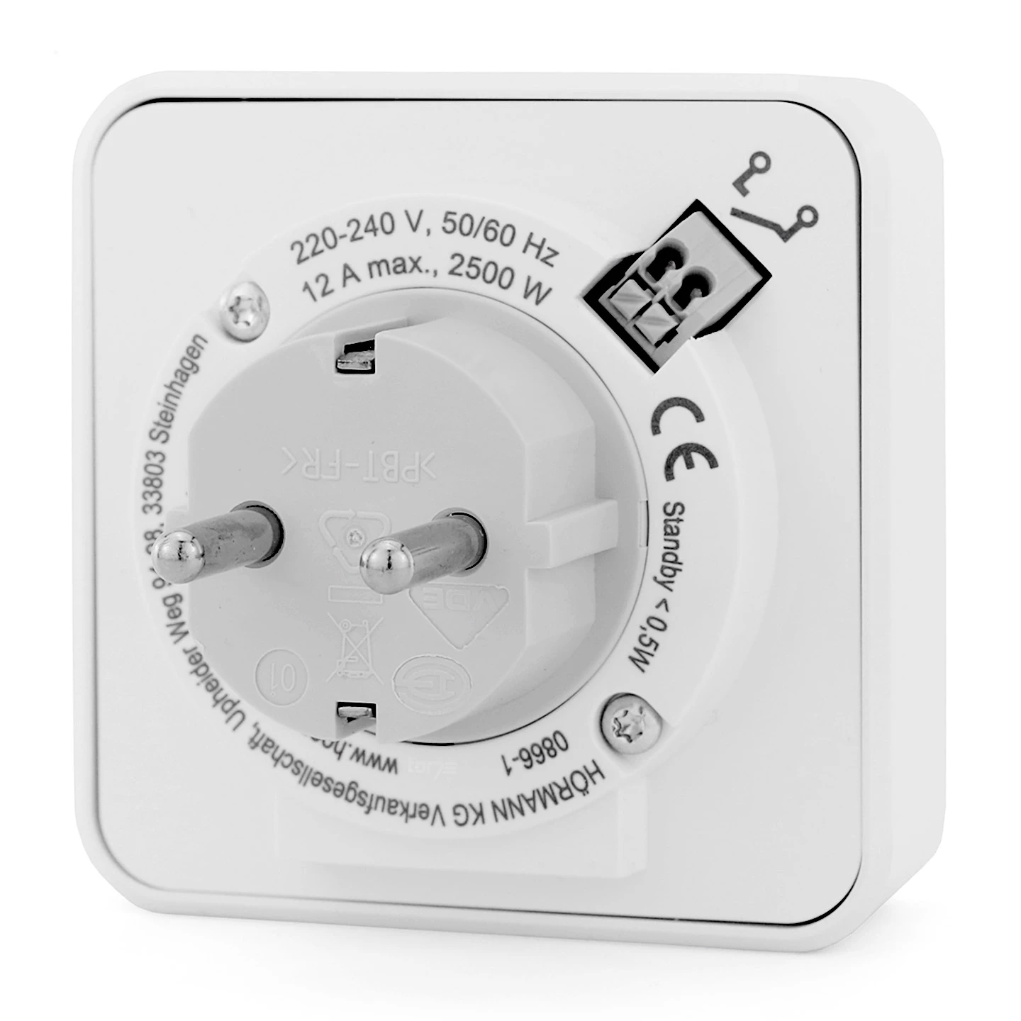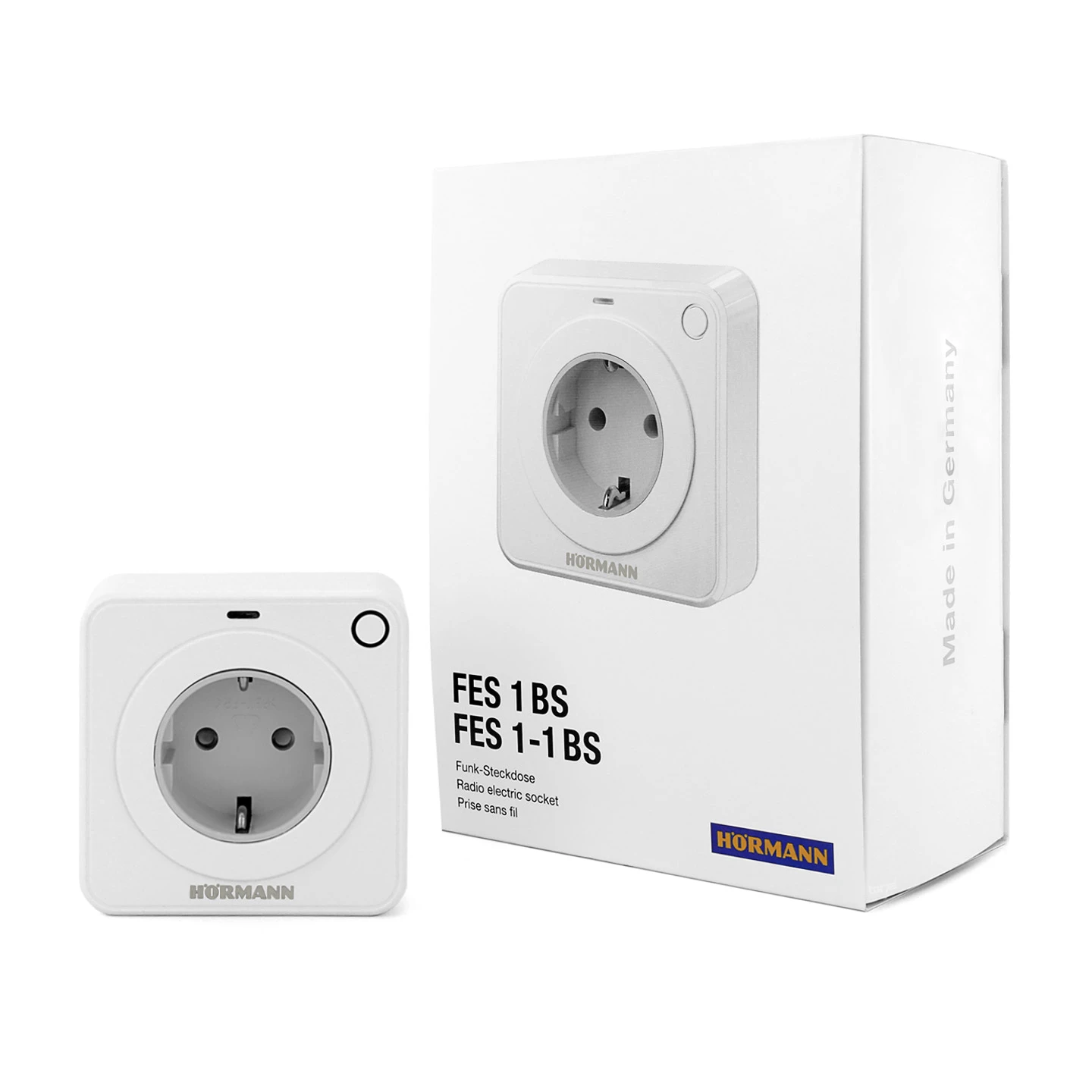 Hörmann hat die Steckdose für verschiedene Stecker-Varianten hergestellt. Wir bieten Ihnen die Steckdose für den bei uns gängigen Steckertyp F (Schuko-Stecker) an. Die Funksteckdose FES 1-1 868-BS sollte nur in trockenen Räumen verwendet werden, da die Schutzart ausschließlich für diese Umgebung ausgelegt ist.