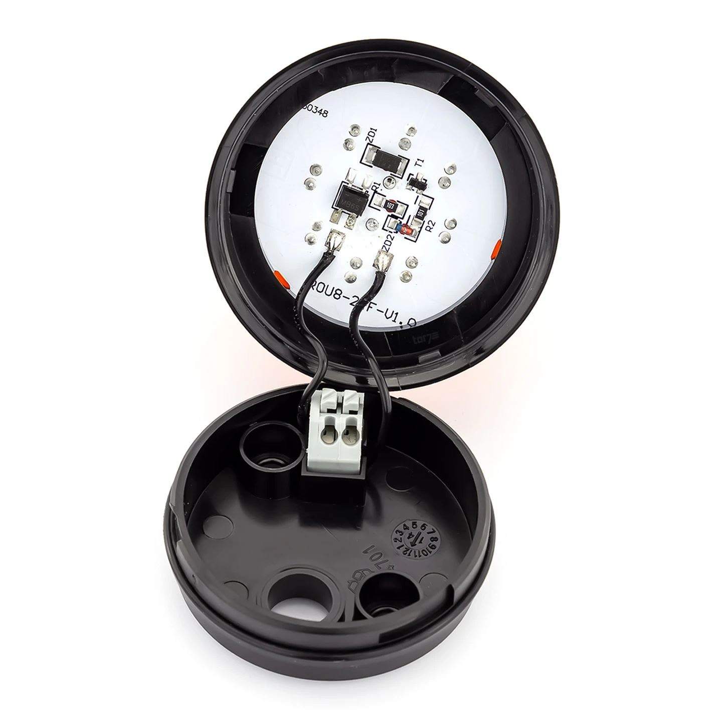 Das wichtigste Bauteil der SLK-24-P ist ein energiesparendes LED-Modul. Das Modul leuchtet ungefähr so hell wie eine herkömmliche 7 Watt Glühlampe. Die Leistungsaufnahme der SLK-24-P beträgt dagegen zusammen mit dem Piezo-Element nur 1,2 Watt. Zur Stromversorgung benötigt die Signallampe eine 24 V Niederspannung, welche etwa über ein entsprechendes Netzteil bereitgestellt werden kann. Alternativ bieten die Hörmann Torantriebe RotaMatic und LineaMatic einen eigenen 24-V-Ausgang, an welchen man die Lampe anschließen kann. Der Anschluss ist bei der SLK-24-P sehr einfach, da sie über einen Verpolschutz verfügt. Schäden durch versehentliches Vertauschen der Pole sind somit ausgeschlossen.